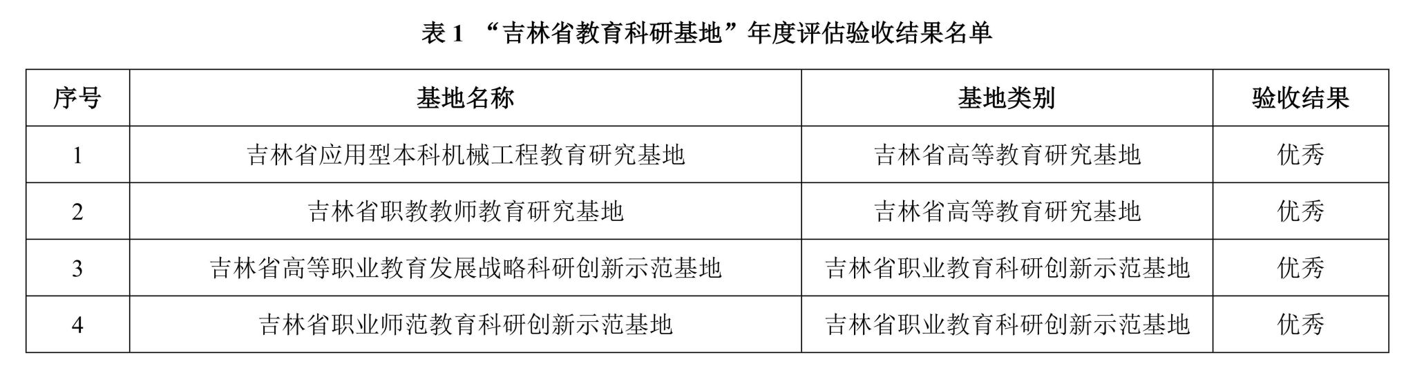 吉林省教育科学研究领导小组近日公布了吉林省教育科研基地及立项建设基地(单位)年度评估验收结果,米乐官网2个吉林省高等教育研究基地、2个吉林省职业教育科研创新示范基地均顺利通过评估验收,验收结果均为“优秀”(见表1)。