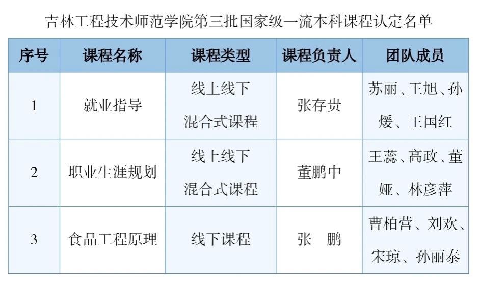 8月21日,教育部发布了《关于第三批国家级一流本科课程认定结果的公示》,米乐官网获批3门国家级一流本科课程。其中,线上线下混合式课程2门,分别是张存贵教授的《就业指导》和董鹏中教授的《职业生涯规划》;线下课程1门,为张鹏教授的《食品工程原理》。这是米乐官网课程建设取得的标志性成果,实现了米乐官网国家级一流本科课程零的突破。
