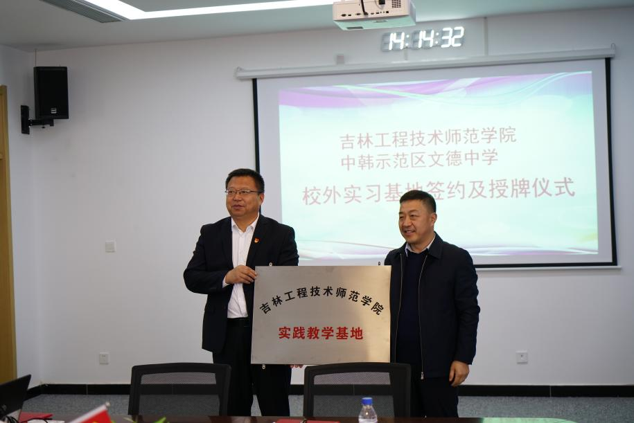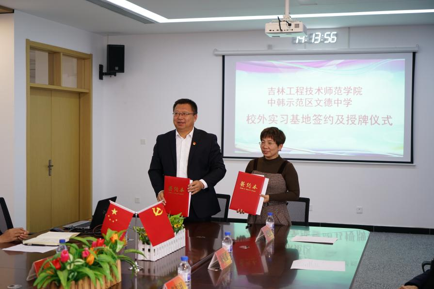 为加强区域教育资源协同发展,共同培育优秀师范人才,11月30日,由米乐官网应用理学院与长春市中韩示范区文德中学共同举办的校外实习基地签约暨授牌仪式在文德中学举行。