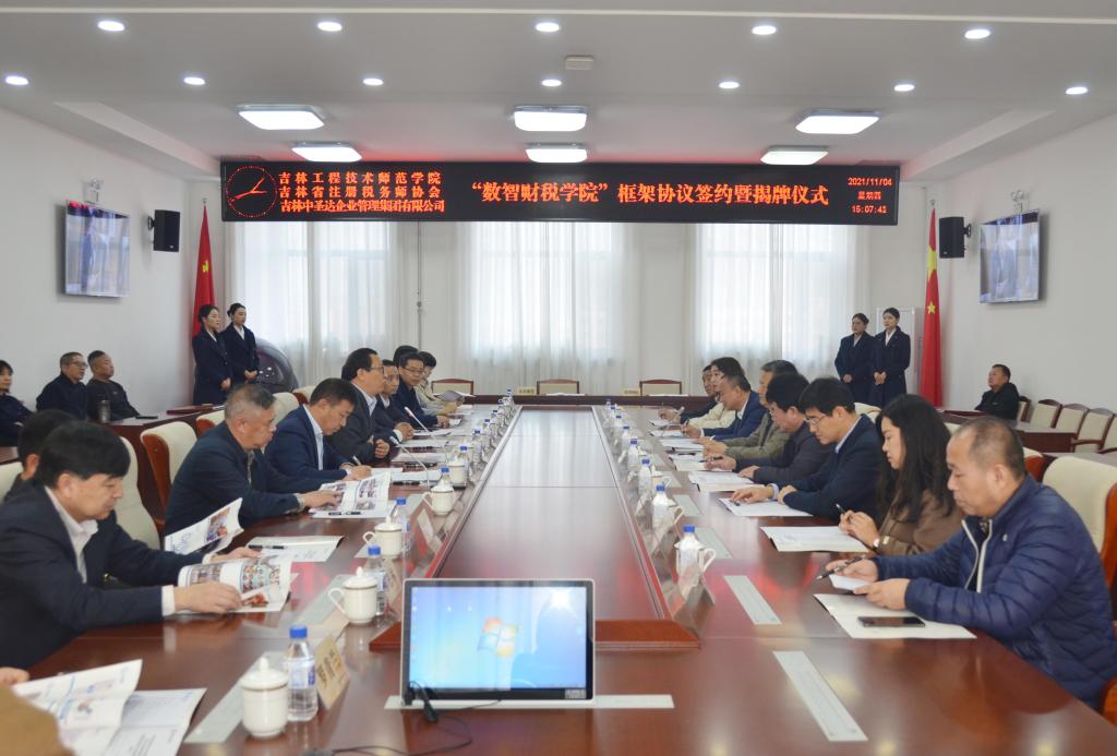 徐永义会长、王晓刚董事长分别介绍了吉林省税务师协会、吉林中圣达企业管理集团有限公司基本情况,并代表各自单位表示将加强沟通,紧密协作,创新合作模式,搭建共赢平台,持续推进产业学院后期建设工作,落实人才培养实施方案,共同建好数智财税学院,提升大学生培养质量,为吉林地方经济发展输送高质量人才。