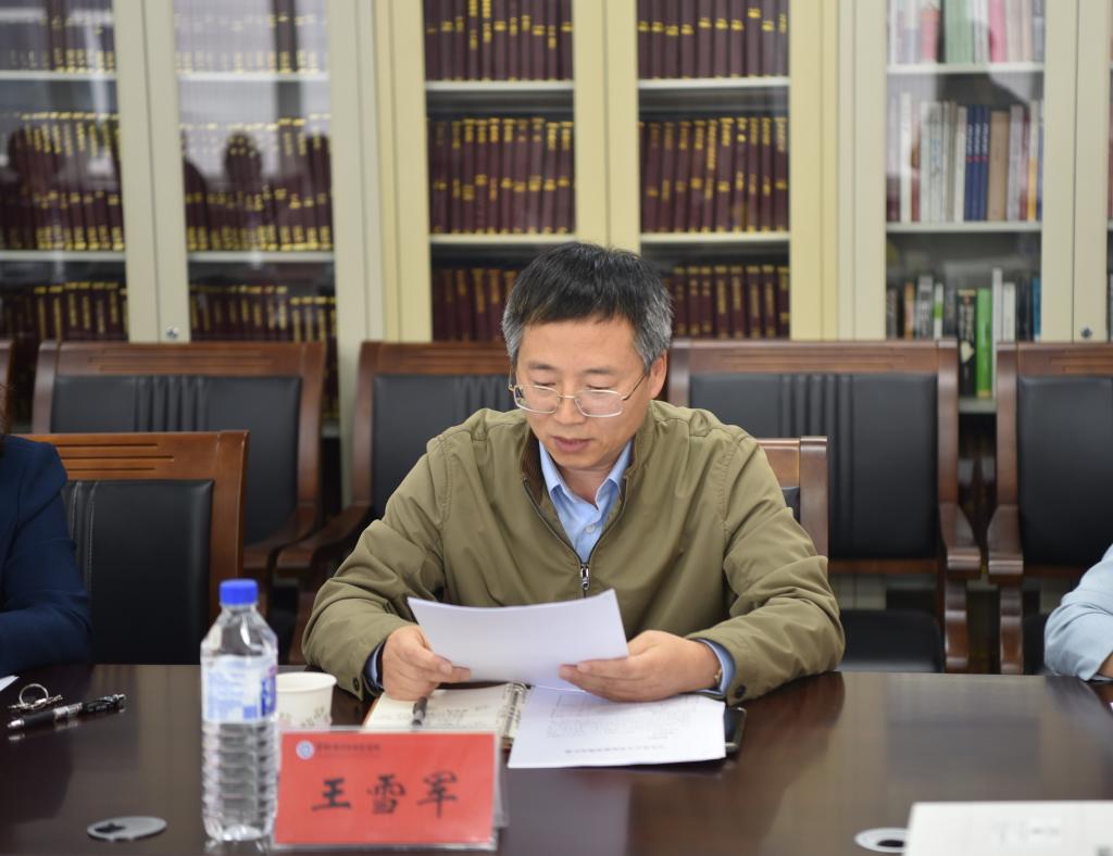 王雪军在会上作了中心发言,详细汇报了马克思主义学院建设的情况、存在的问题和未来建设规划。武德峰、邱敏、张晓明分别从米乐官网大学生思想政治教育工作基本情况、青马工程建设、师德师风建设、三全育人、意识形态建设等方面作了发言。
