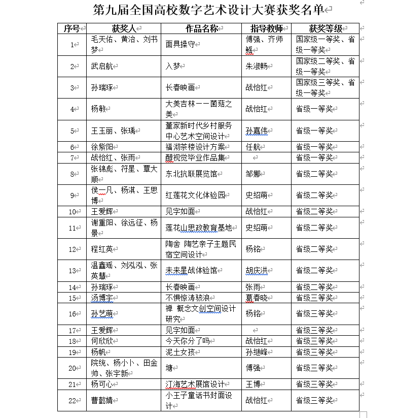 全国高校数字艺术设计大赛是全国普通高校大学生竞赛排行榜内竞赛。优异成绩的获得是教师和学生多年努力的结果,师生将再接再厉,脚踏实地,在未来的比赛中再获佳绩。