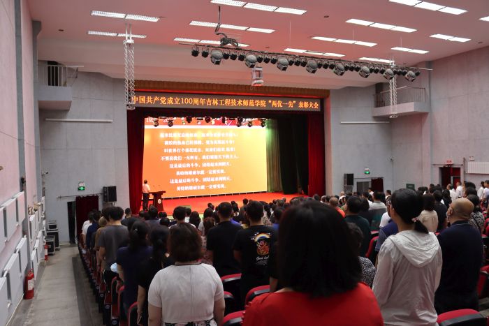 6月30日,为庆祝中国共产党成立100周年,学校在报告厅召开“两优一先”表彰大会,学校领导、部分党员代表、受表彰的先进基层党组织负责人和先进个人出席了大会。大会由党委副书记、校长杨晓东主持。
