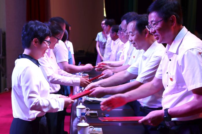 刘剑桥发表讲话,代表学校党委向受到表彰的先进集体和先进个人表示热烈的祝贺,向“光荣在党50年”的老党员表示崇高的敬意,向全校各级党组织和全体共产党员致以节日的问候。