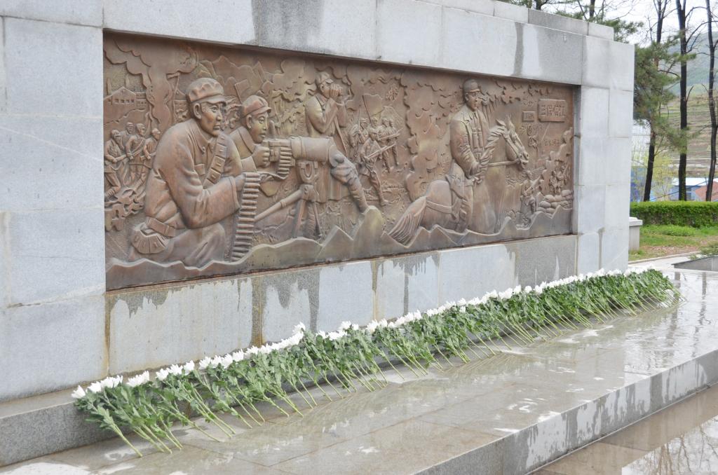 参加培训的教工肃穆地站立在猫耳山下,在巍峨耸立的纪念碑前,静听党校教师的现场教学,教工深切地缅怀浴血奋战的烈士们,很多人热泪盈眶。学校领导为烈士们敬献花篮,教工们在碑林前献上白色菊花,大家默念着墓碑上镌刻的烈士英名,表达敬仰和哀思。