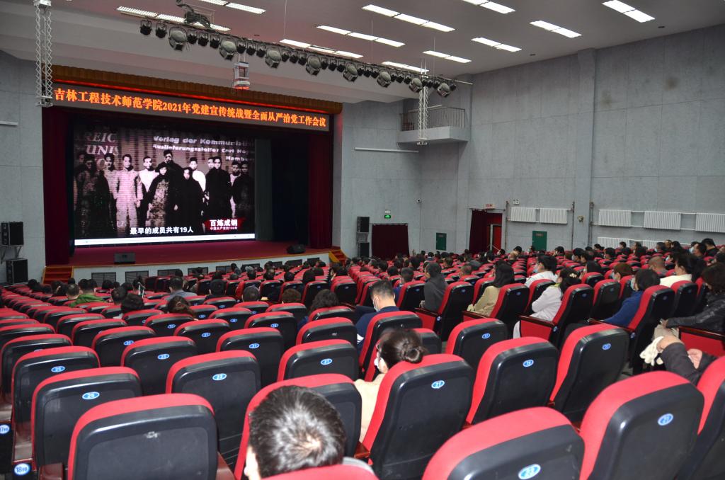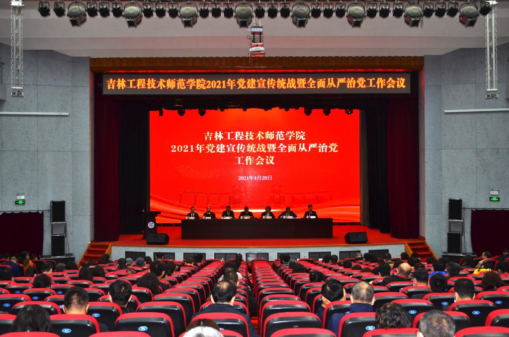 党委书记栾立明发表讲话时指出,近年来学校深入学习贯彻党的十九大精神成效显著;党的领导在学校改革发展中的优势全面彰显,以高质量党建引领学校事业高质量发展;团结奋斗的干事创业氛围愈加浓厚;学校党委牢牢掌握意识形态工作领导权,确保了马克思主义在学校意识形态领域的指导地位;思想政治工作质量不断提升;干部队伍和人才队伍建设扎实推进;基层党组织建设大力加强;政治生态和作风建设持续向好。栾立明指出,做好学校今年全面从严治党工作要深刻理解准确把握全面从严治党新部署,巩固发展良好政治生态;贯彻落实新时代党的建设总要求,全面加强党的政治建设;着力构建学校大宣传格局,唱响爱党爱国爱社会主义的时代主旋律。栾立明强调,2021年是学校“十四五”开局之年,是学校聚力发展、提高质量的关键之年,我们要巩固和拓展“不忘初心、牢记使命”主题教育成果,开展好党史学习教育,坚持和加强党对学校工作的全面领导,以党的政治建设为统领,切实把党要管党、从严治党的要求落到实处,充分发挥全面从严治党引领保障作用,推动落实好学校“十四五”规划目标任务,确保“十四五”时期目标任务落到实处,以深化整改的新成效迎接省委的新一轮巡视,全面开启建设国内一流工程师范大学新征程,推动学校各项事业高质量发展,以优异成绩迎接中国共产党成立100周年。
