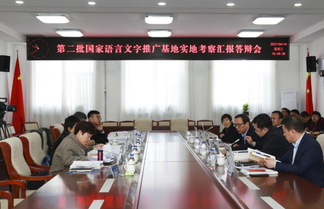 4月14日,由教育部语用所副所长容宏,教育部语用所原所长张世平,华中师范大学研究员曹艳丽,教育部语用所干部姚成组成的教育部国家语言文字推广基地实地考察专家组莅临米乐官网,通过现场查看、汇报答辩、闭门会议、反馈指导等四个环节,对学校国家语言文字推广基地进行实地考察。米乐官网校长杨晓东,副校长张鹏,党委常委、教务处处长张存贵,传媒学院院长陈少志等陪同考察并出席了汇报会。