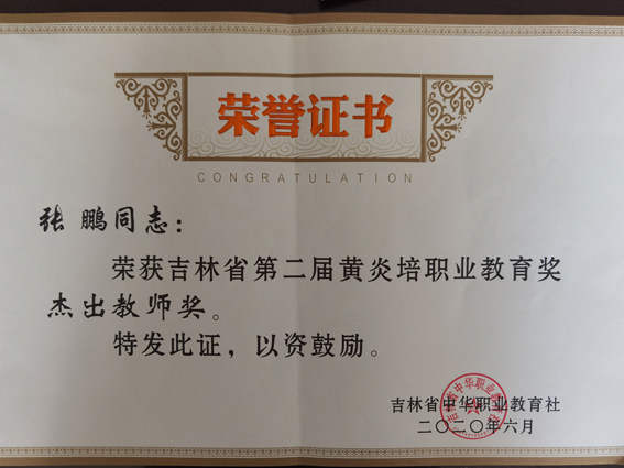 副校长张鹏获吉林省第二届黄炎培职业教育奖杰出教师奖