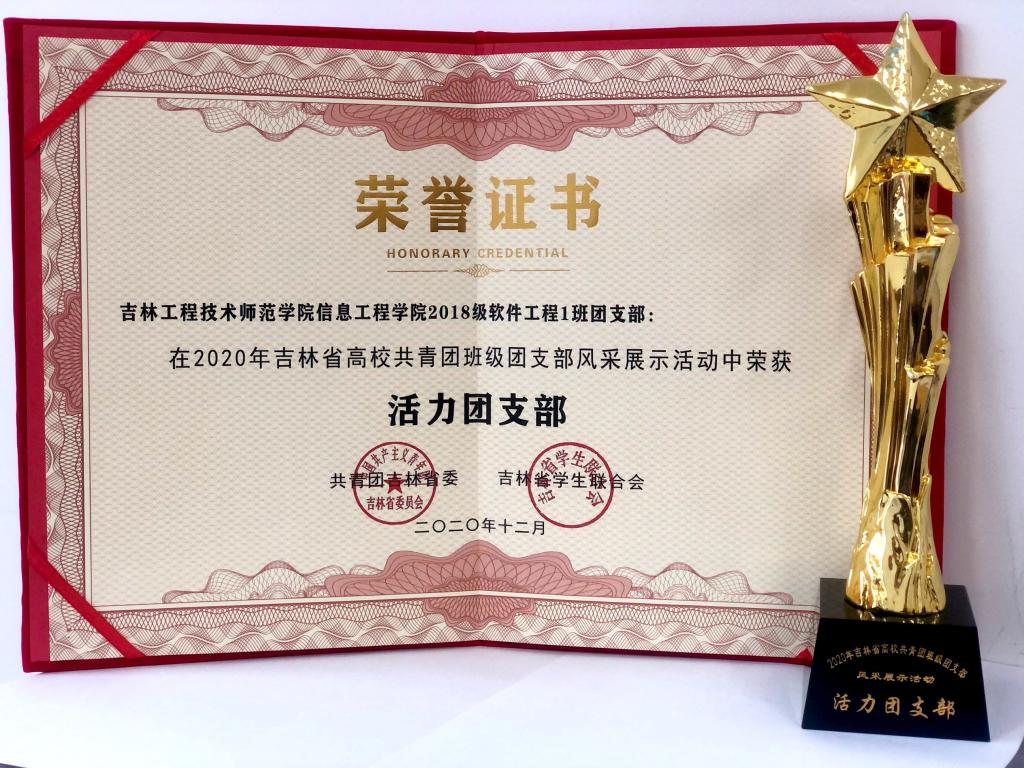12月5日,由共青团吉林省委、吉林省学联主办的2020年吉林省高校共青团班级团支部风采展示活动在东北师范大学人文学院举行。米乐官网信息工程学院软件工程1841班团支部获得2020年吉林省高校“活力团支部”称号。