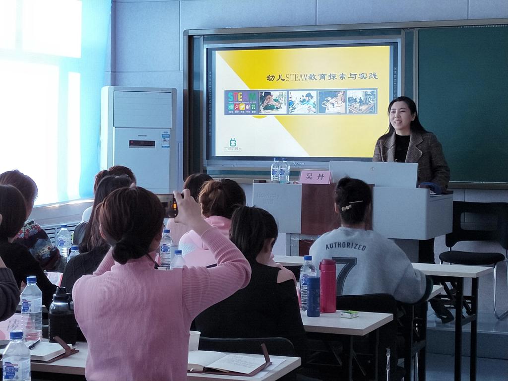 研修班贯彻“全员、全程、全面”的培训理念,采取“专家讲座、现场教学、交流研讨”等培训形式,丰富理论、汲取养分、共话教育、共探初心。在讲座环节,邀请国内知名学前教育专家、东北师范大学家庭教育研究院院长赵刚教授和东北师大博士生导师张向葵教授,围绕教育发展、师德修养、课程建设、管理能力等专题进行讲座,为全体学员带来学前教育的典型经验和最新理论。在现场教学环节,组织学员到长春市人民政府机关第一幼儿园现场考察,园长兼党支部书记孙红艳介绍了班级工作经验、班内特色活动以及师资德育发展,通过近距离的浸润学习,引导学员互动交流,感受园所文化和教育内涵,为学员开展了理实一体化的现场体验式培训。在交流研讨环节,围绕“STEAM教育在学前教育中的应用”主题,邀请信息工程学院吴丹和吉林省芝麻开门集团公司STEAM教育专业教师孙庠祺进行了精彩的展示、研讨与交流。