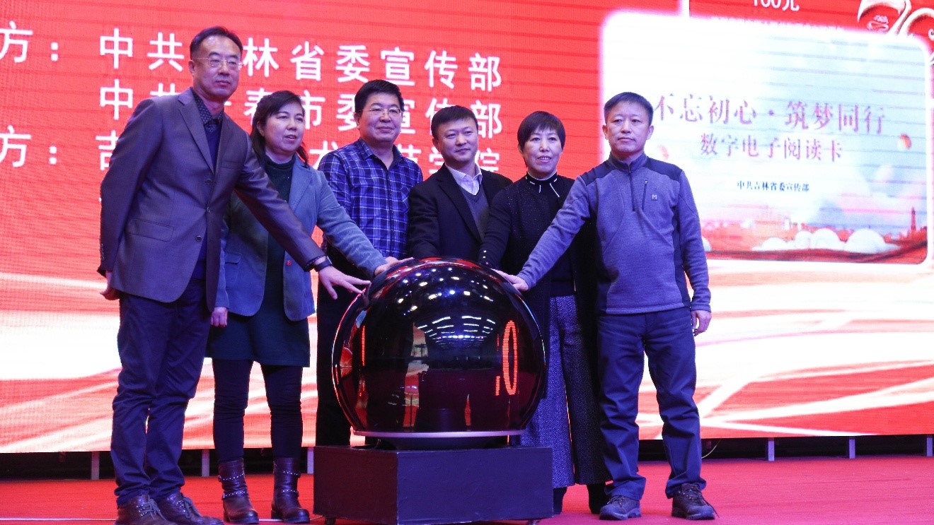 本次活动在诗歌朗诵《书韵》中拉开序幕。吉林省委宣传部出版处处长李彦生、副处长金润在,长春市委宣传部出版印刷发行管理处长马艳红,长春市新华书店总经理宋孟林,学校党委宣传部部长武德峰,传媒学院院长陈少志共同按动了“你选书,我买单”活动启动球,并向大学生代表发放了惠民购书卡和电子阅读卡。