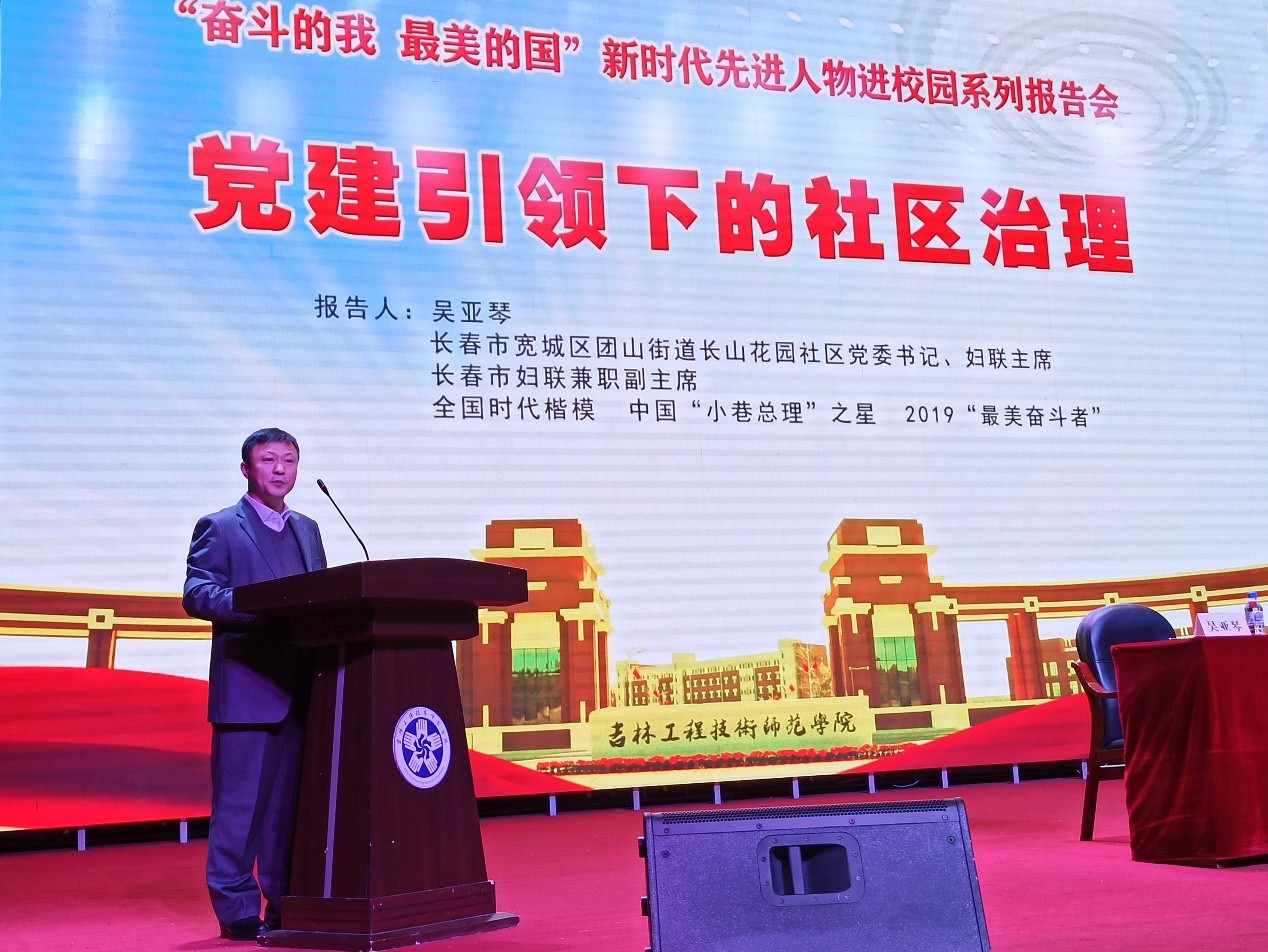 12月11日,“奋斗的我 最美的国”新时代先进人物进校园首场报告会在学校报告厅举行。