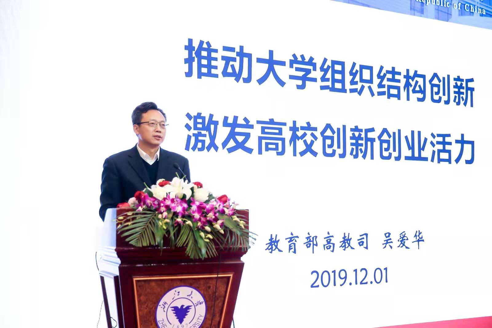 成立仪式上,浙江大学党委副书记邬小撑就联盟成立的背景、发展举措和对未来的展望进行了详细说明,教育部高教司二级巡视员、综合处处长吴爱华作题为“推动大学组织机构创新 激发高校创新创业活力”主题报告,为联盟建设提供方向指引。