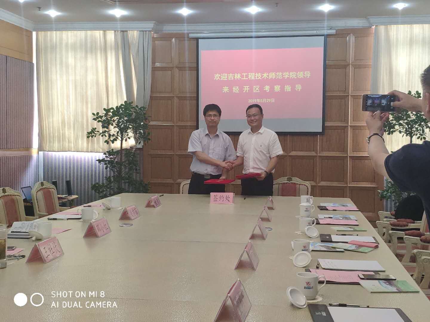张鹏副校长一行首先与芜湖经济开发区管委会进行交流,会上,开发区副主任王社伏、人社局局长、副局长陈广磊等介绍了开发区发张情况以及人才引进政策。张鹏副校长代表学校重要交流发言。他介绍了学校的历史沿革、发展现状、专业设置、人才培养、招生就业等情况,分享了近年来学校与校企合作的作法与成果。他表示,芜湖经济开发区作为学校的重要实习与就业基地,我们将进一步深化合作,服务地方经济发展,提高人才培养质量,促进毕业生高质量就业,努力实现多方共赢。张鹏副校长表示,学校将进一步以优势教育资源为企业、以地方需求为宗旨,培养更多适合的、有用的技能型人才。地方政府高度重视技能人才的培养与引进,他们表示将采取一系列激励措施,引导毕业生到芜湖就业。 开发区副主任王社伏与张鹏副校长签署了校地合作协议。