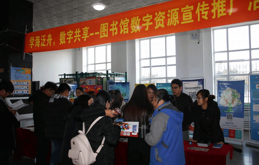 11月11日上午,在图书馆一楼大厅开展了数字资源现场咨询服务活动,邀请了知网、万方、超星、新东方、CIDP等多家数据库公司来馆宣传推广,现场发放了各类宣传资料2000多份,受到师生读者的热烈欢迎。