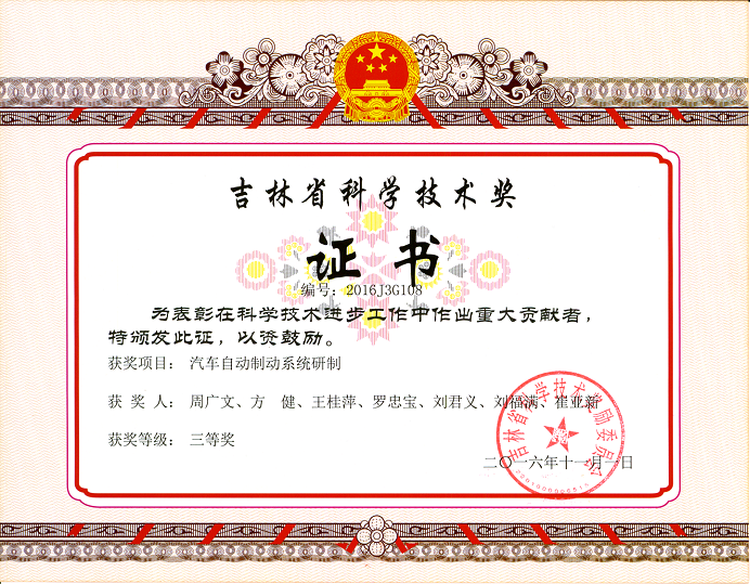 按照吉林省科技厅《关于开展2016年吉林省科学技术奖推荐工作的通知》要求,学校科研处认真、积极组织申报推荐工作,共申报5项成果,其中申报技术发明奖1项、科技进步奖4项。经科技厅组织专家严格评审,米乐官网周广文教授申报的《汽车自动制动系统研制》、李莲芝教授申报的《汽车变速箱质量问题追溯的方法研究》、于静老师申报的《基于森林防火无人机预警系统的火灾探测》3项成果分别获得吉林省科学技术进步奖三等奖。