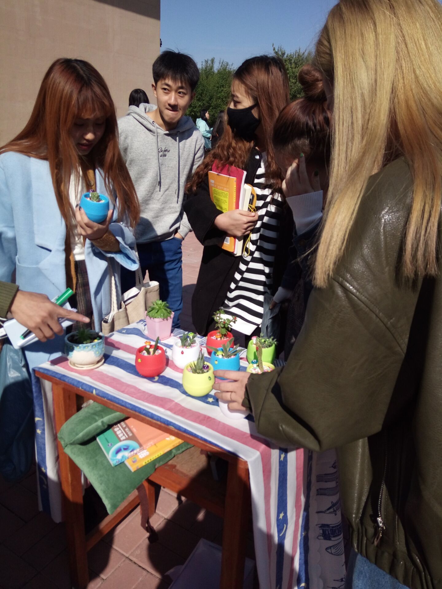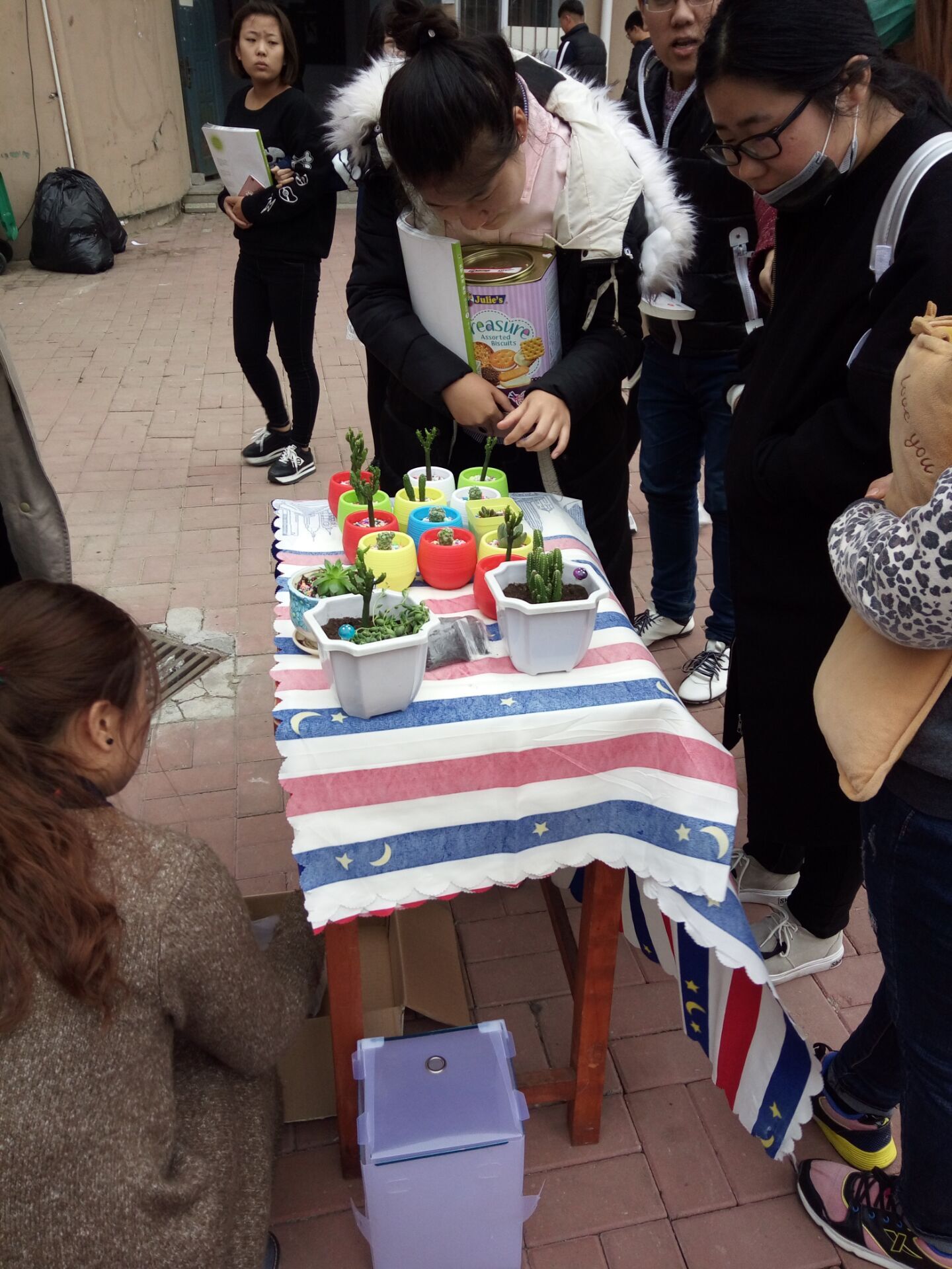 各参赛小组选择的售卖种类很多,在这里有花样繁多的可爱的多肉植物、“致一小组”的日常用品、市场营销1542班的“饼干店”,有许多的手机壳、手机支架等。不仅有送货上门,还有免费品尝活动。卖家热情叫卖,买家精心挑选实用的商品,热闹的气氛感染了很多人也吸引了越来越多的顾客,同学们也在卖与买中学到了书本以外的知识、懂得了赚钱的不易,让我们在享受青春的美好的同时,学会体会,学会成长。