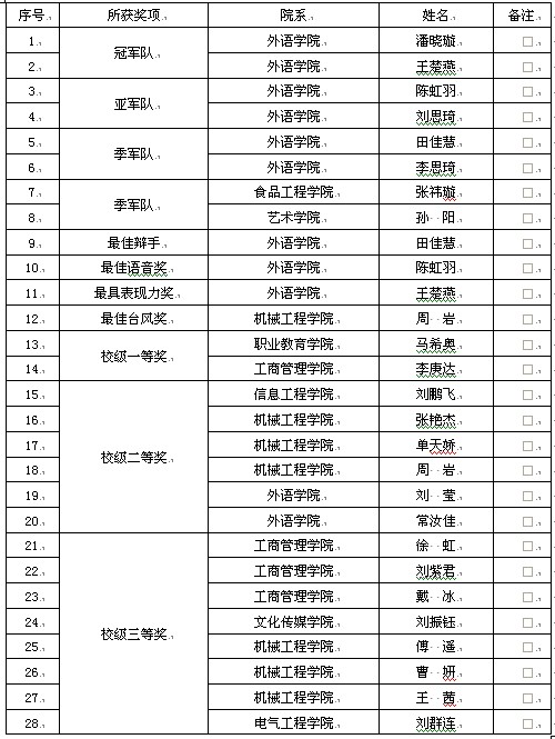 为做好米乐官网的校园选拔赛,学校决定由校团委、教务处主办,外语学院承办本次赛事。初赛时,外语学院全体任课教师在全校开设大学英语课程的每个自然教学班中选拔1-2名同学参加复赛,全校共有80人取得了4月20日的复赛资格,经过紧张的复赛竞争,来自全校9个教学分院不同专业的24名同学晋级本次决赛。