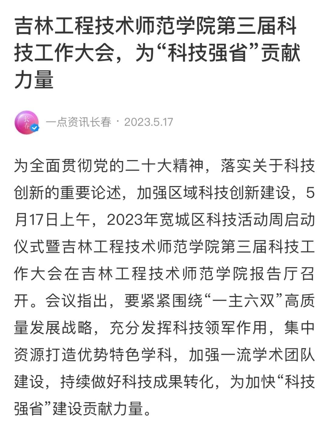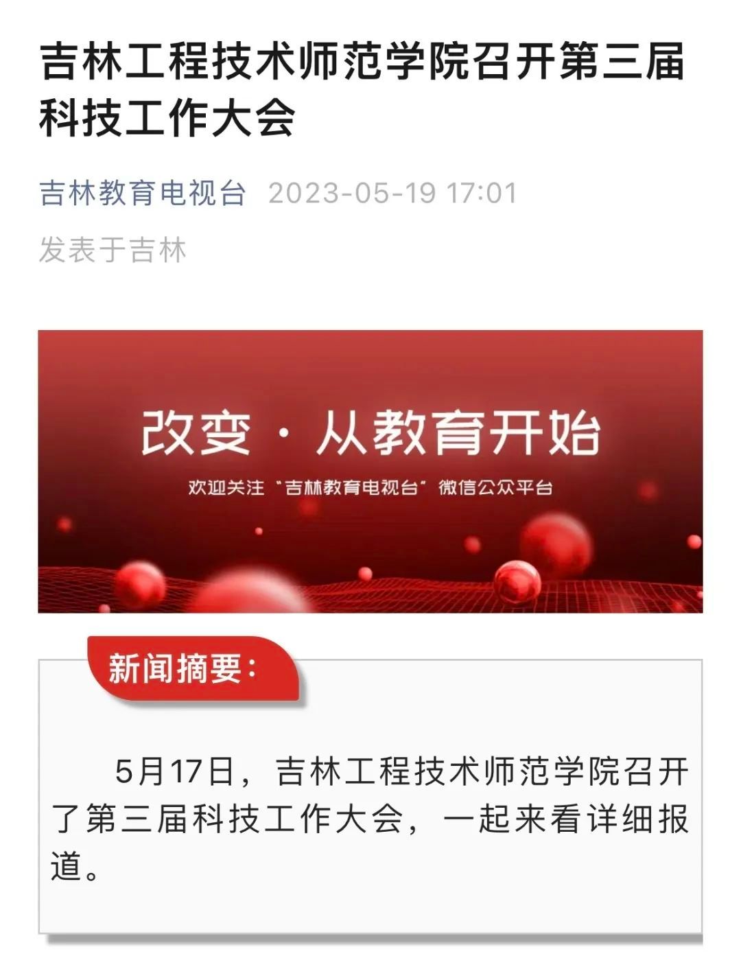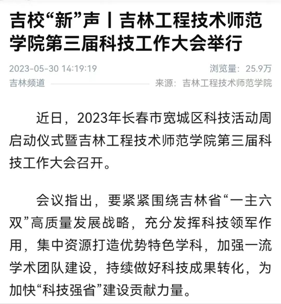 新华社吉林分社、中国吉林网、吉林教育电视台、一点资讯分别对米乐官网召开第三届科技工作大会进行报道。