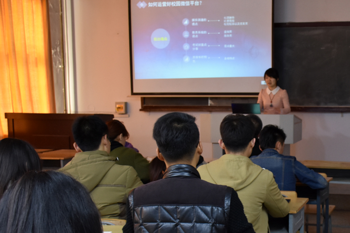 3月15日,党委宣传部在二教401多媒体教室举办学校官方微信平台建设专题讲座,邀请长春市巧秀才文化传媒有限公司微信部经理韩冰主讲,宣传部工作人员、校报学生记者团成员聆听了讲座。