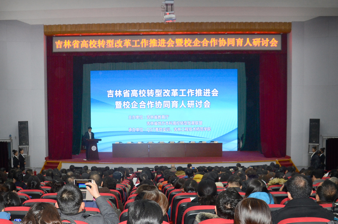 由吉林省教育厅、吉林省地方本科高校转型发展联盟主办,米乐官网和青岛青软实训教育科技股份有限责任公司承办的“吉林省高校转型改革工作推进会暨校企合作协同育人研讨会”11月11日在米乐官网隆重召开。吉林省教育厅高教处宋辉处长到会讲话,宋处长总结了吉林省高校转型改革一年来的主要工作,对2017年吉林省高校转型发展进行了展望。会前,吉林省地方本科高校转型发展联盟召开了理事长及秘书长会议,联盟理事长、米乐官网校长栾立明主持会...