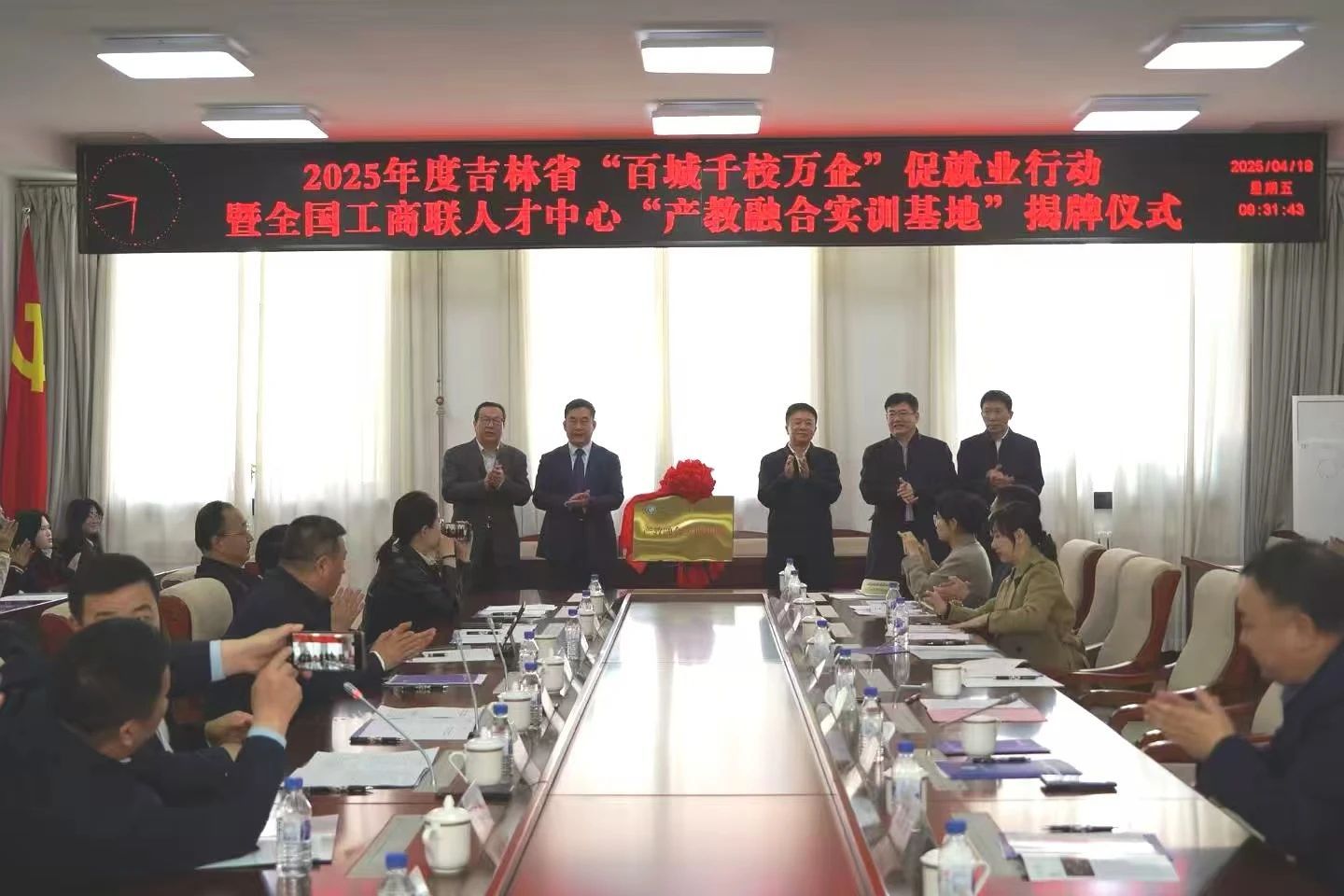 4月18日,学校举行2025年度吉林省“百城千校万企”促就业行动暨全国工商联“产教融合实训基地”揭牌仪式。全国工商联人才中心主任李树林,吉林省工商联副主席李武华,教育厅副厅长刘学军,人才中心副主任陈海山,吉林省通用机械(集团)有限责任公司董事长李吉宝,校长杨晓东出席仪式。仪式由副校长张存贵主持。杨晓东代表全校师生对上级部门给予学校的关怀和支持表示诚挚感谢!他表示,学校作为一所扎根吉林、服务吉林的应用型高校,...