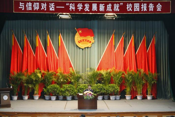 10月12日下午,共青团吉林省委副书记栾国栋在米乐官网报告厅作专题报告,题为《与信仰对话——科学发展新成就》。