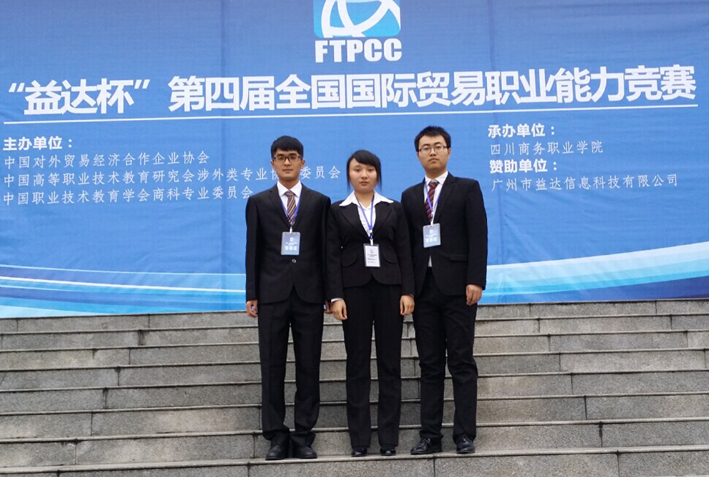 经济贸易学院国际经济与贸易专业学生隋东旭、张栋梁和王馨瑶同学,在指导教师王芳老师的带领下,参加了2014年11月2日在成都由中国对外贸易经济合作企业协会、中国高等职业技术教育研究会涉外类专业协作委员会和中国职...
