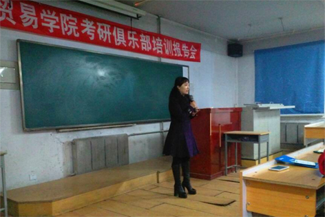 2015年3月15日,经济贸易学院考研俱乐部邀请长春争流考研培训学校校长刘依依及英语教师刘晓艳来米乐官网,为考研俱乐部的同学作了考研指导报告。