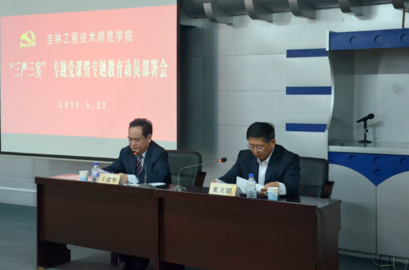 5月22日下午,学校在三教多功能厅召开“三严三实” 专题党课暨专题教育动员部署会,学校领导王建华、栾立明、王永明、刘琦、张鹏出席会议。